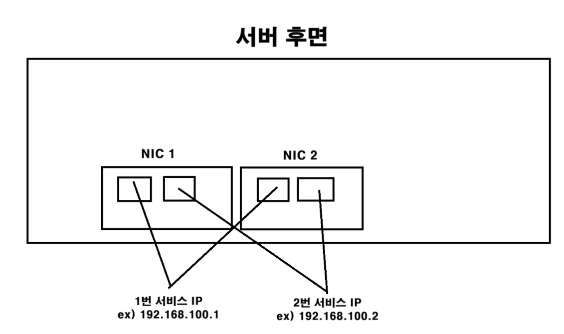 NIC(네트워크 인터페이스 카드)가 보통 두개가 구성되어있고 두 NIC카드를 본딩(Bondig)하여 하나가 죽더라도 하나가 계속 서비스가 될 수 있도록 한다. (OS별로 NIC카드 두개를 이중화하는 단어는 조금씩 상이하다)